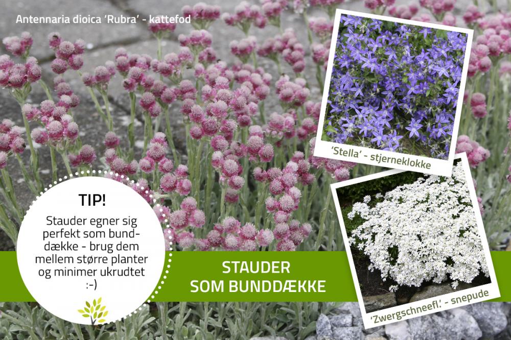 Storkenæb, hosta og enkelte andre planteslægter af stauder er meget udbredt som bunddække - og det er fortjent, fordi de er meget velegnede. Hvis du af og til har lyst til variation i bunddækningerne, bør du tage et kig på de mange fantastiske stauder, der findes.