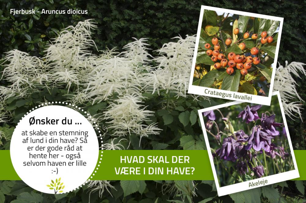 Egnede stauder kan være akeleje, anemone, bispehue, duskkonval, fjerbusk, hosta, julerose/påskeklokke, kulsukker, kæmpestenbræk, kærminde, kærmindesøster, liljekonval eller storkenæb. Det stedsegrønne indslag kan være buksbom, laurbærkirsebær eller lave taks.