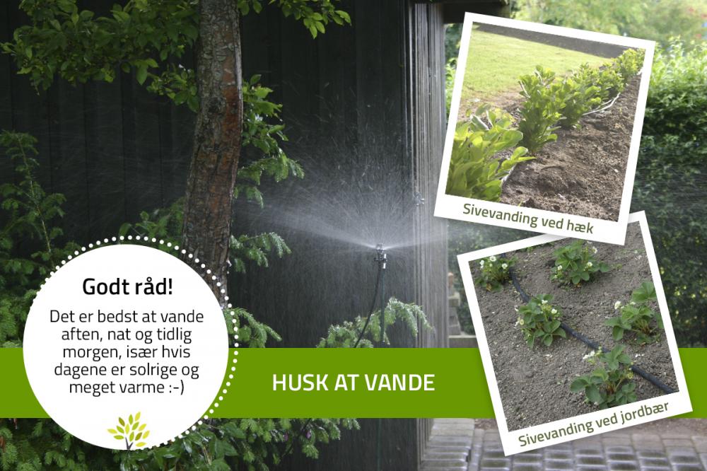 Især gælder det planter, der er plantet i foråret og derfor endnu ikke har et godt udviklet rodnet, herunder både nyplantede og vandkrævende ældre planter på let og sandet jord.