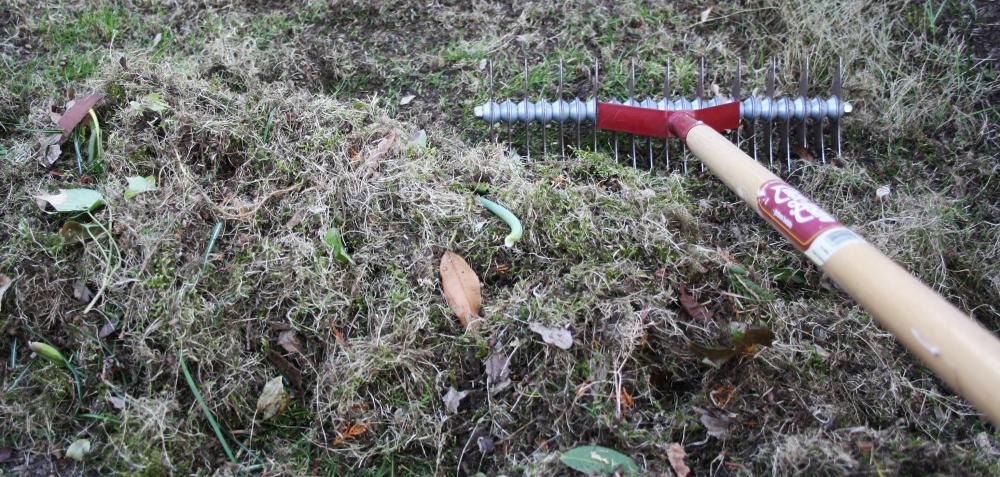 Den sidste tids kolde og tørre vejr betyder også, at jorden mange steder er blevet meget mere tør, end for en måned siden. Når græsplænen er tør, kan den tåle en grundig gennemrivning, enten med en håndrive eller med en plænelufter.